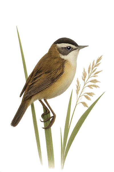 Acrocephalus melanopogon 13 cm.