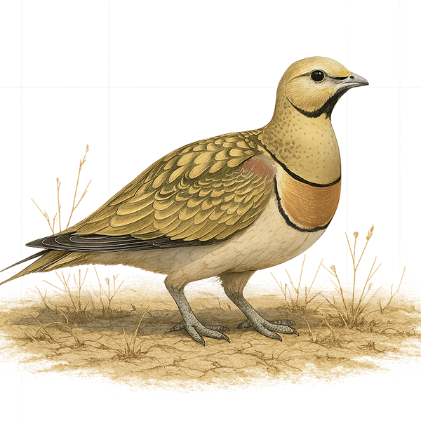 Menor que la Ganga Ortega, plumas centrales de la cola largas y