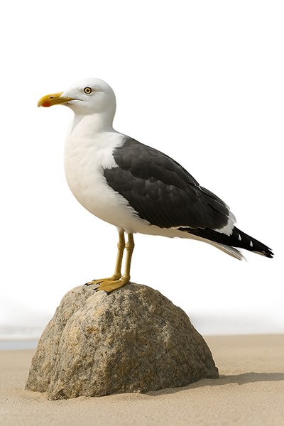 Identificación: Dorso normalmente más grisáceo que el del Gavión; pico menos vigoroso; patas amarillas (después del tercer o cuarto año); los inmaduros tienen dorso castaño, partes inferiores más pálidas, ancha franja al final de la cola; sexos iguales. Nidificación: Anida en colonias, en el suelo o en bordes acantilados, a veces en abrigos densos, tales como helechos o brezos; ambos sexos construyen nido de hierba, algas y plumas; pone, de mayo a junio, 3 huevos castaño-oliva o verdoso claro con marcas pardas; incubación, alrededor de 27 días, por ambos padres; los pollos, alimentados principalmente por la hembra, vuelan tras unas 5 semanas. Alimentación: Carroña y basura; peces, moluscos, lombrices, insectos, ratas, ratones, aves y huevos; también algas y grano. Hábitat: Mares costas y estuarios. |