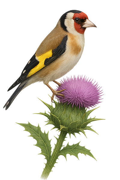 su afilado pico para extraer las semillas, sobre todo de los cardos y otras